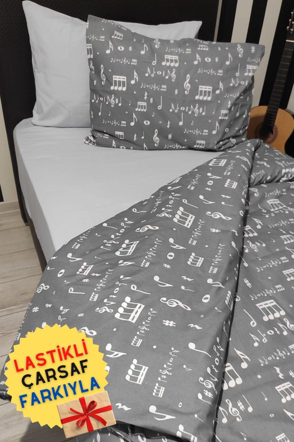 Müzik notu desenli genç müzik elastik yatak keten tek yorgan kapağı seti