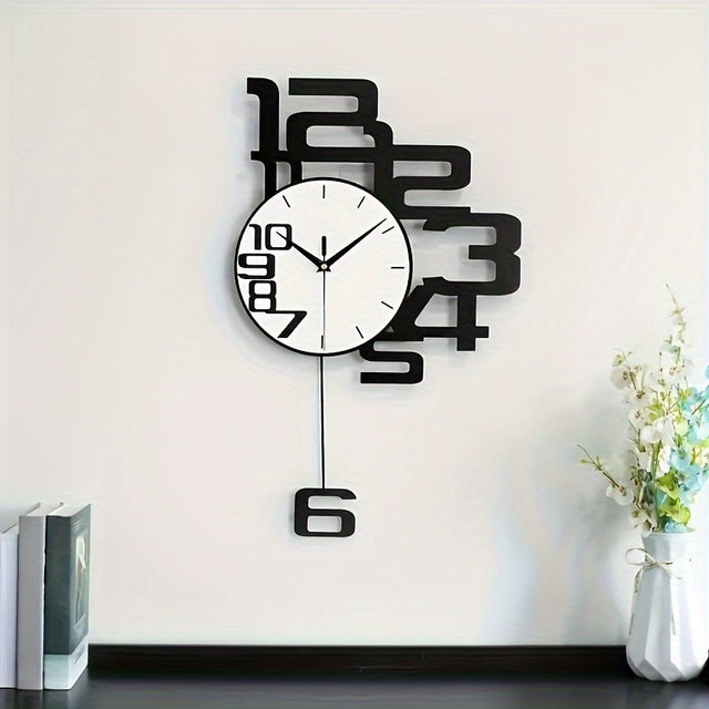 Chic Modern Wall Clock with Silent Digital Display - Battery-Powered, Creative Decor for Home and Office