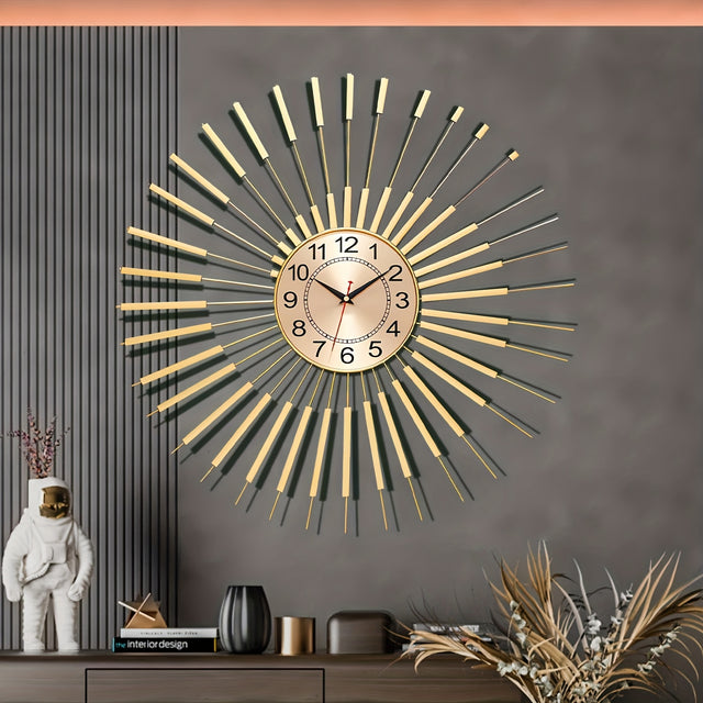Elegant Golden 3D Metallic Wall Clock, 24 InchModern Silent Wall Clock, Silent Non-Ticking Mechanism, Mid-Century Modern Art Deco Design, Home Decor Accessory For Living Room, Bedroom, Office