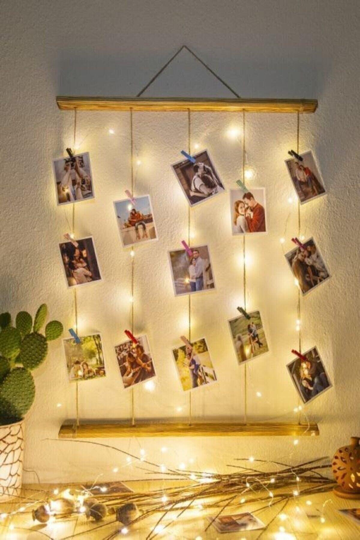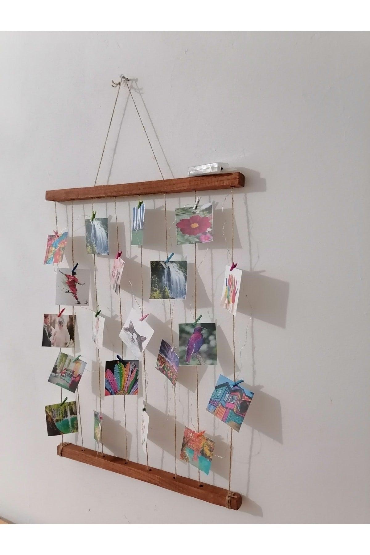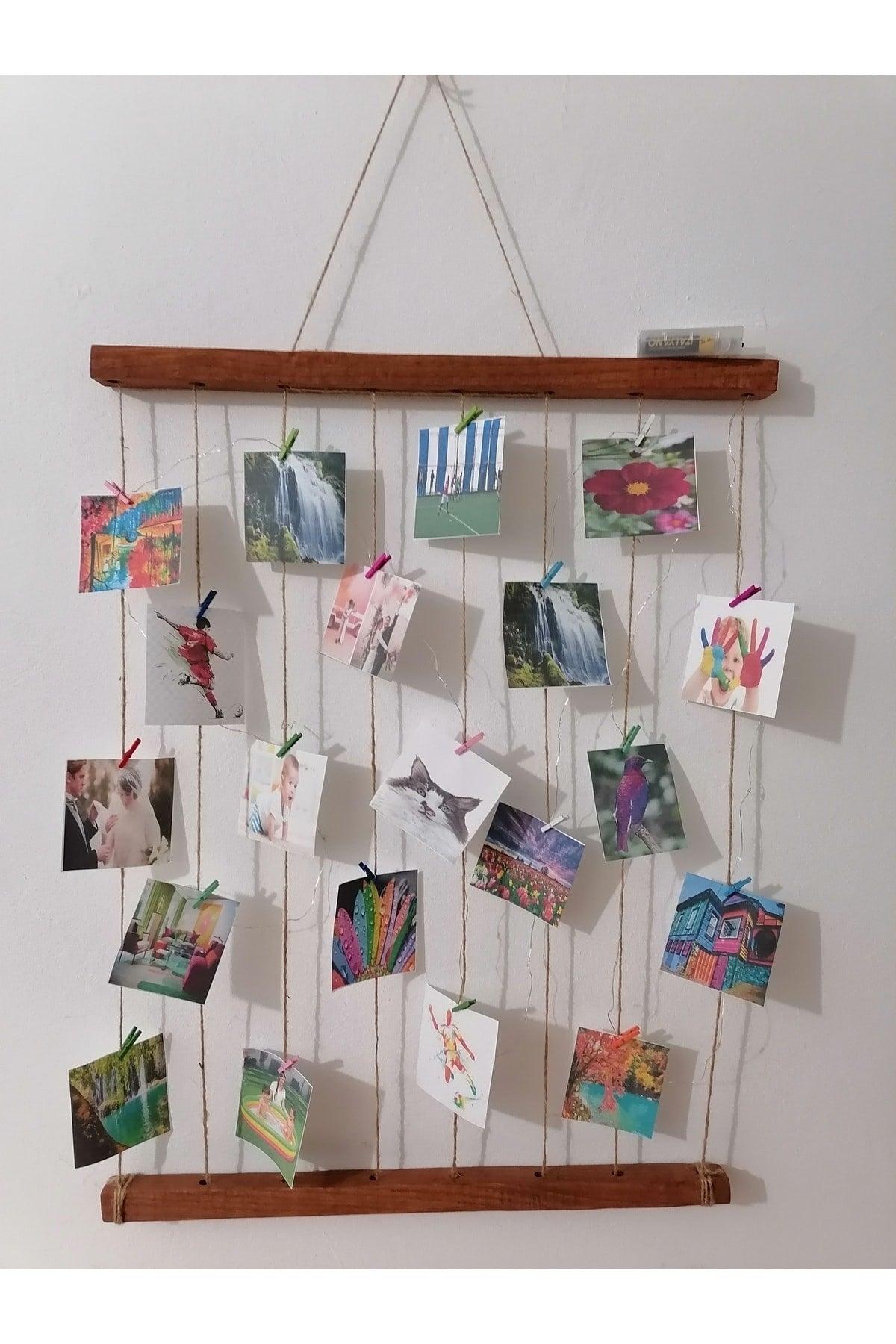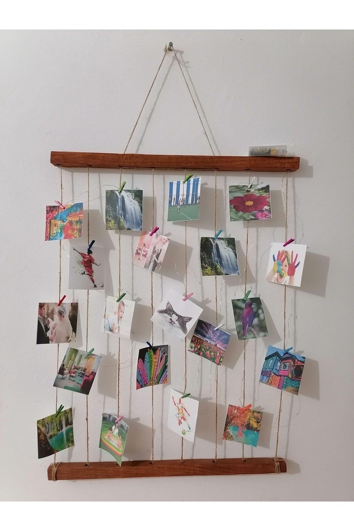Halat mandallı yanan fotoğraf askısı, LED anıt duvarı, ahşap fotoğraf çerçevesi 50x60 cm