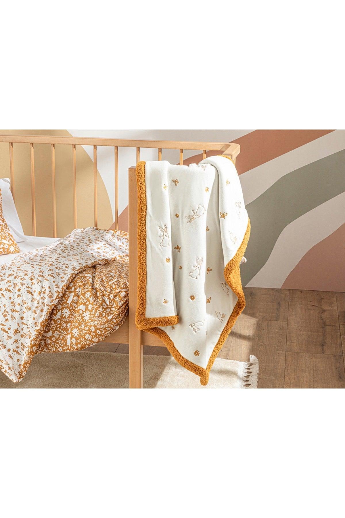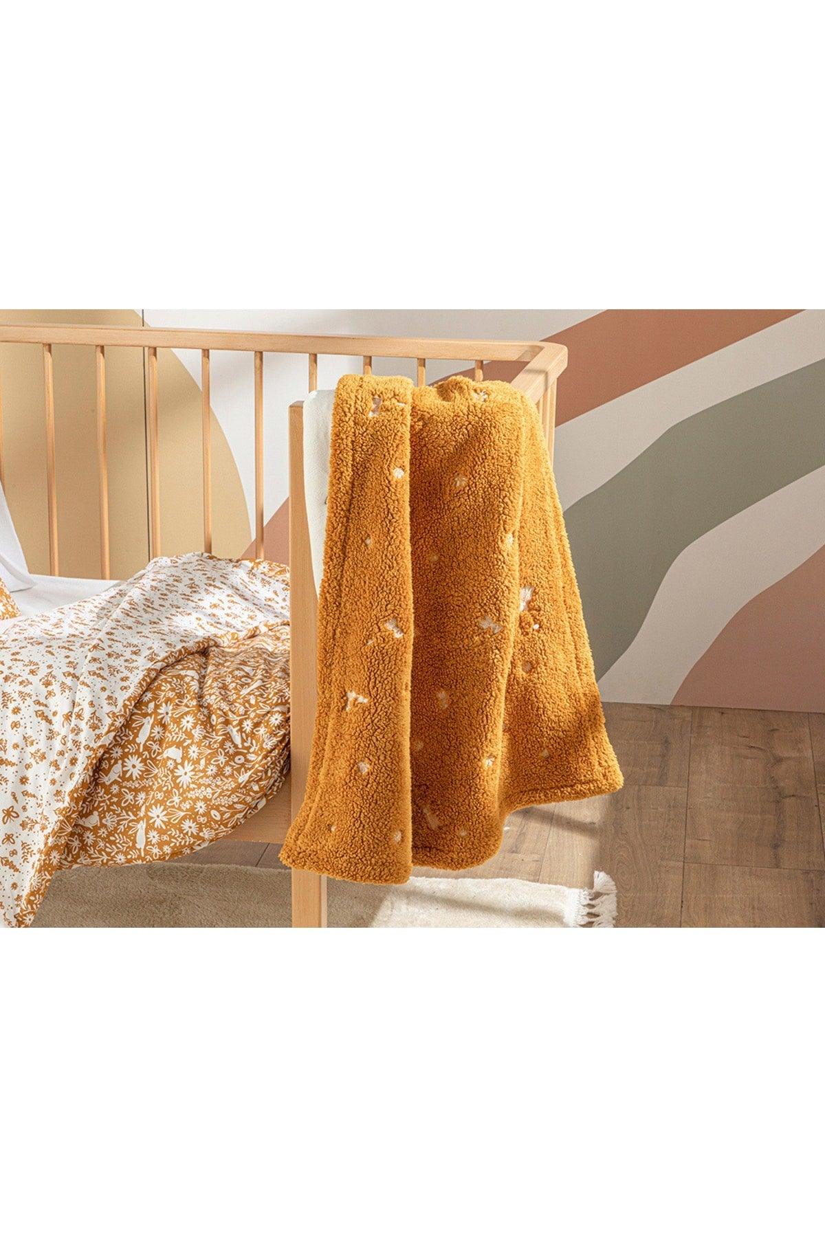 Kabarık tavşan bebek battaniyesi 75x120 cm hardal