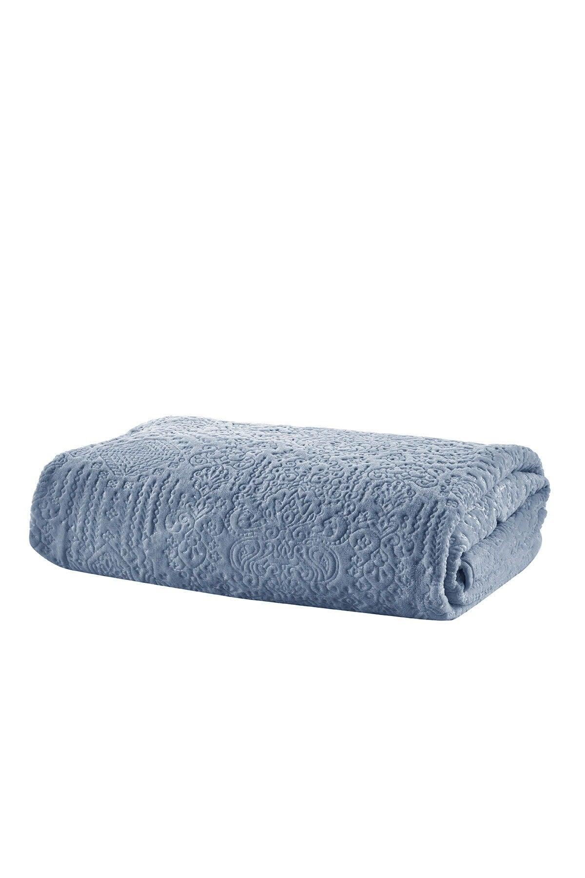 Embos battaniye etnik desen çift mavi 220x240cm