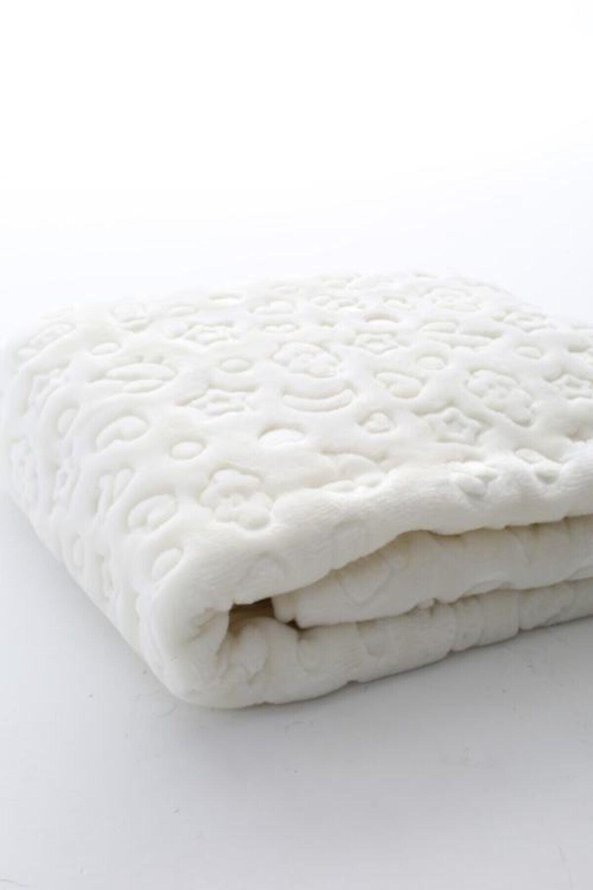 Kabartmalı peluş bebek battaniye ecru