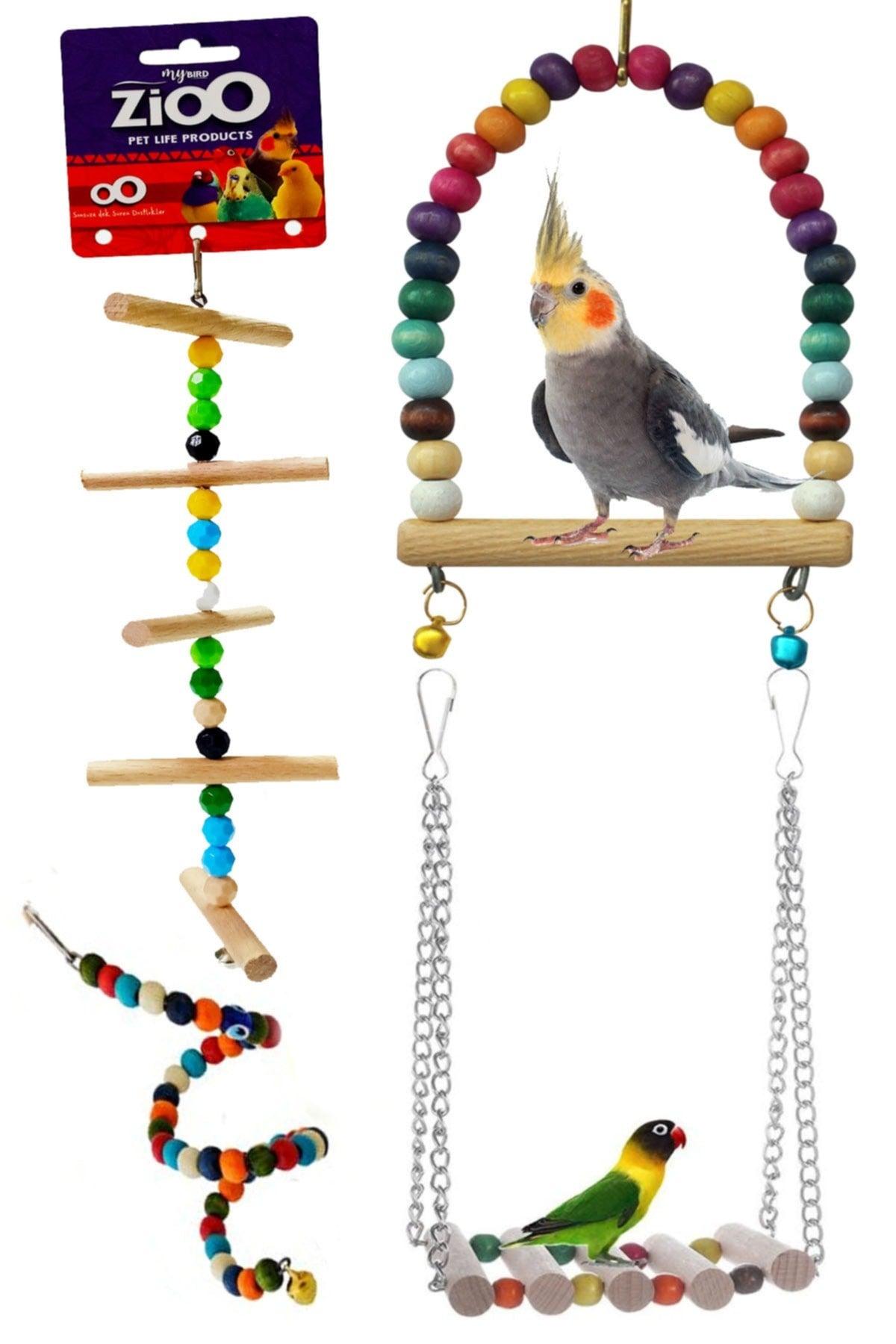 4 kişilik bütçeler ve papağanlar için salıncak oyuncak seti