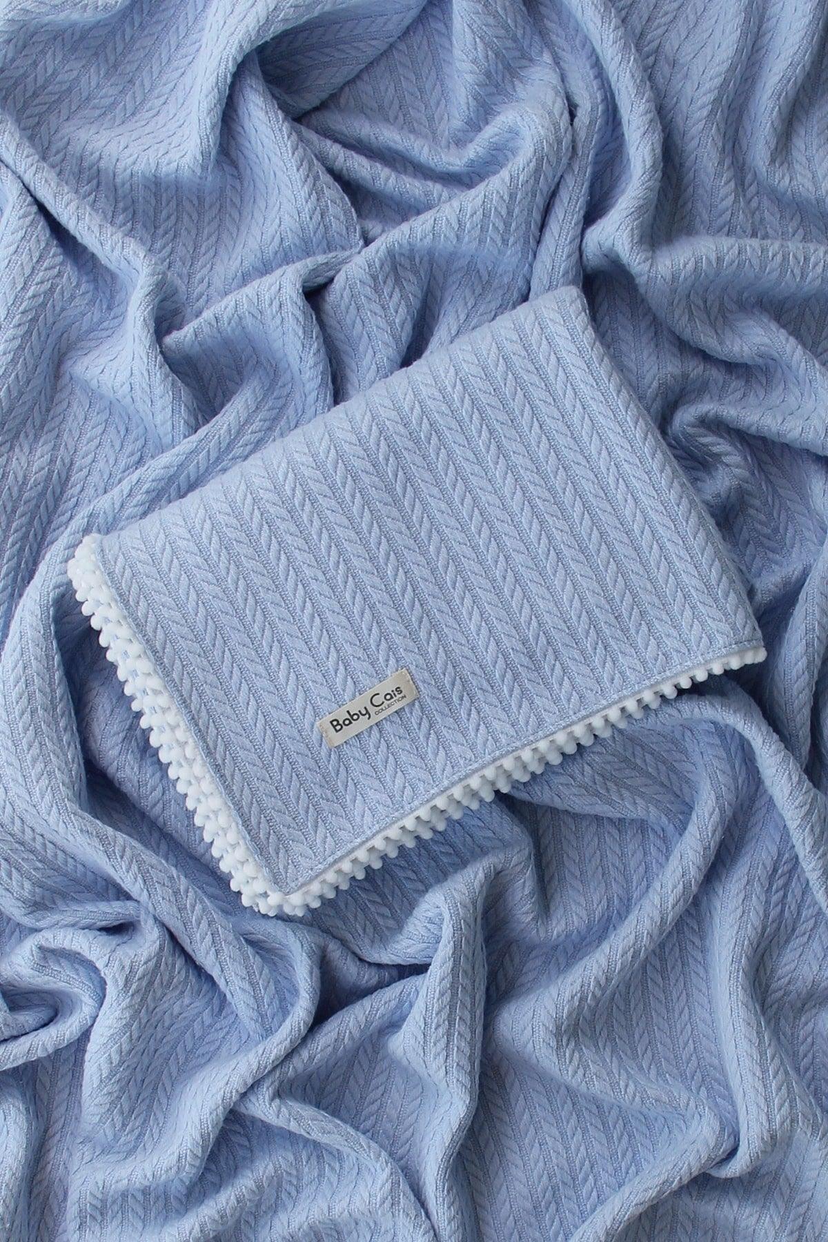 Örme desen bebek turu organik pamuklu bebek battaniye yumuşak mavi 100x120 cm