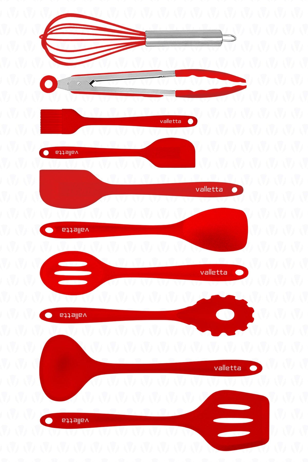 Salvatore Heat Resistant Fireproof Non-Stick Silicone Spatula Set 10 Pieces Red