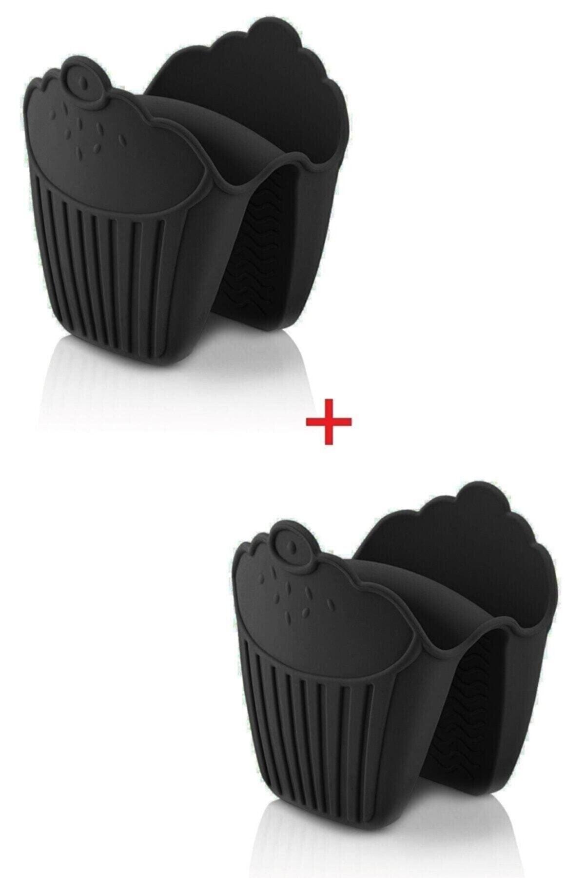 Siyah Silikon Fırın Eldiven Tutucu Isı Yalıtımlı Slip Slip Mikrodalga Fırın Tutucu 2 PCS Siyah