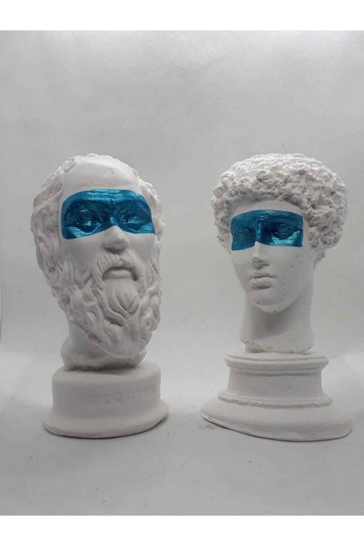 Sokrates + Hermes 2 parçalı heykel büst biblo