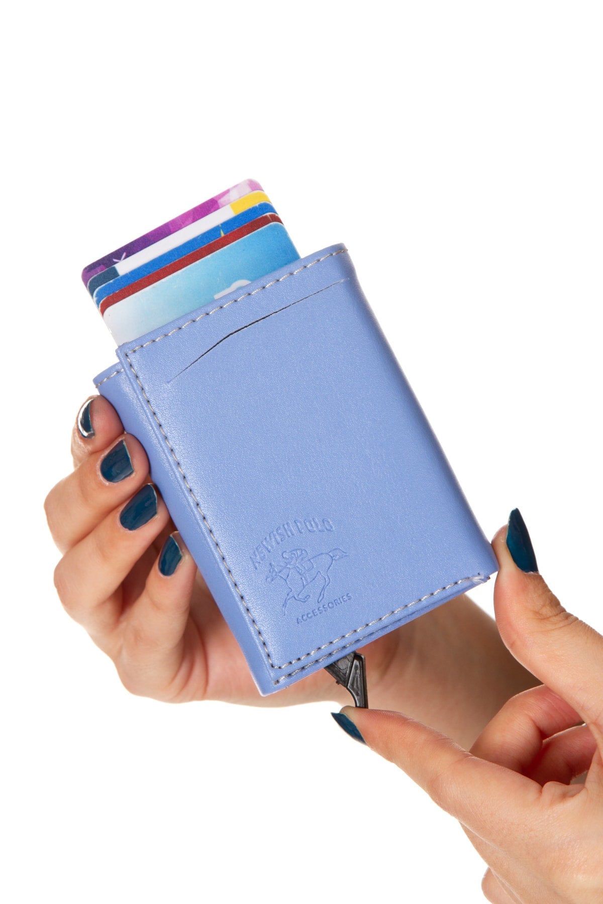 Women'S Leather Aluminum Mechanism Sled Card Holder Wallet With Paper Money Compartment (7,5X10Cm)